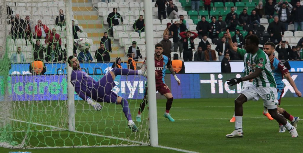 Noch vor der Halbzeitpause gelang Konyaspor jedoch der Ausgleich. Der Spanier Alejandro Pozuela (37.) konnte mit einem Abschluss aus der Strafraummitte das 1:1 markieren. Anastasios Bakasetas (45.+5) sah in seinem 100. Spiel für Trabzonspor nach einem Foul in der Nachspielzeit der ersten Hälfte die Rote Karte. Zunächst war der Grieche mit Gelb verwarnt worden, doch nach VAR-Hinweis änderte sich die Farbe der Karte und der offensive Mittelfeldspieler, der in der laufenden Saison in der Liga auf sechs Treffer und fünf Assists kommt, wurde vom Feld gestellt. Damit fehlt Bakasetas seinem Team voraussichtlich mindestens zwei Spiele. In der 85. Minute musste Trabzonspor schließlich das 1:2 einstecken. Nach einer Flanke von Guilherme köpfte Soner Dikmen den Ball in die Maschen und sicherte Konya drei Punkte. Die Grün-Weißen kommen damit auf 45 Zähler und verbessern sich vorerst auf Tabellenplatz sechs, während das punktgleiche Trabzonspor aufgrund der schlechteren Tordifferenz auf Rang sieben zurückfällt.