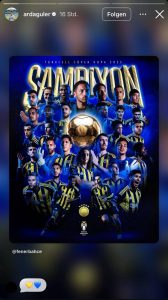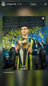 Im ersten Schritt griff Arda Güler das Sieger-Motiv von Fenerbahce auf und setzte damit den Fokus auf den Titelgewinn. Kurz danach folgte ein weiterer Beitrag: ein Foto, auf dem Yigit Efe Demir den Pokal in die Höhe streckt – ein Moment, der bei den Fans sofort zündete.