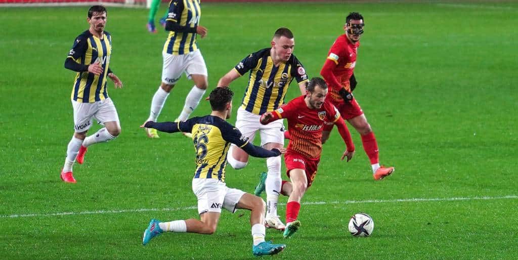 Nach den spannenden Partien am Nachmittag, bei denen die Zuschauer vor ihren TV-Geräten ganze zwölf Treffer in nur zwei Spielen bewundern konnten (mehr dazu hier), hatten Fenerbahce und Yukatel Kayserispor im dritten Achtelfinale des türkischen Pokals einen ziemlich müden Kick zu bieten. Im ersten Durchgang war die wohl nennenswerteste Szene das brutale Foulspiel von Ugur Demirok in der dritten Minute der Nachspielzeit an Rückkehrer Ozan Tufan. Zunächst hatte der Unparteiische Arda Kardesler lediglich den gelben Karton gezückt. Allerdings wurde der ehemalige Innenverteidiger von Trabzonspor nach Hinweis des VAR folgerichtig mit Rot vom Platz gestellt. Auch nach dem Seitenwechsel wurde es trotz der Überzahl der „Kanarienvögel“ nicht wirklich besser. Die Schützlinge von Ismail Kartal wollten zwar, aber der Begriff Kreativität vor dem Kasten des Gegners war den Gelb-Marineblauen ein Fremdwort.